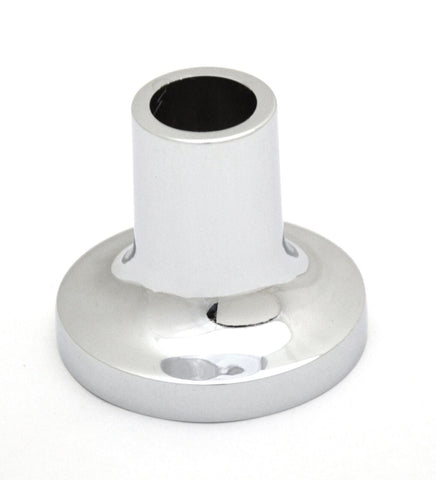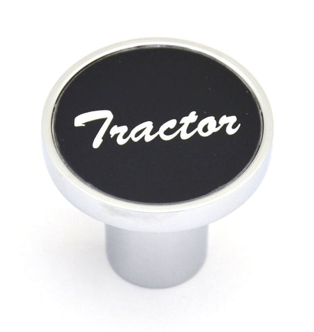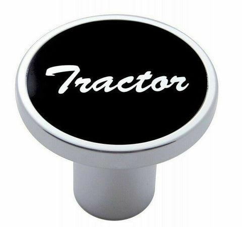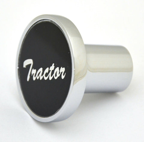 THIS KNOB IS CHROME ALUMINUM AND IT MOUNTS BY SCREWING ON. IT COMES WITH AN ALUMINUM STICKER. THE STICKER IS 1-3/4 INCHES WIDE AND FITS THE TOP OF THE KNOB. NEW, BULK PACKAGING. SET, STICKER AND KNOB.