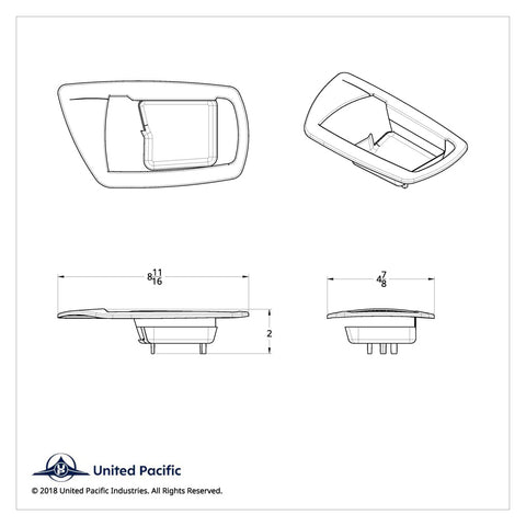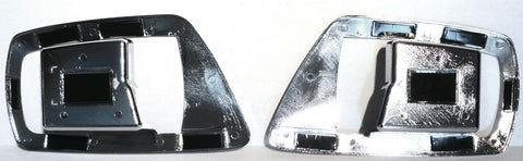THIS PAIR OF CHROME PLASTIC INTERIOR DOOR HANDLE TRIMS FITS KENWORTH 2006 AND NEWER TRUCKS, MODELS W900, T800, T660 AND C500. IT IS 4 1/4" TALL ON STRAIGHT SIDE, 5 5/8" WIDE FROM STRAIGHT EDGE TO SLANT EDGE BOTTOM, AND THE SLANT EDGE IS 4 7/8" TALL. DOUBLE STICK TAPE MOUNT. NEW. PAIR- 1 RIGHT AND 1 LEFT. |