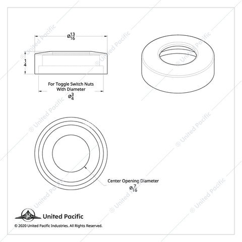 - Size: 3/4 inches wide, 1/4" deep, 13/16 outside diameter