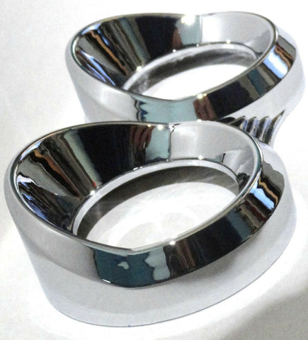THIS IS A CHROME PLASTIC TWO HORIZONTAL GAUGE COVER WITH A VISOR. IT FITS TWO GAUGES FOUND ON THE DASH IN PETERBILT 1987-2005. THE OPENING IS 1.5 INCHES IN DIAMETER, 4-7/8" WIDE OUTSIDE TO OUTSIDE AND 2-1/2 DIAMETER TALL. PUSH ON APPLICATION. NEW. EACH.
