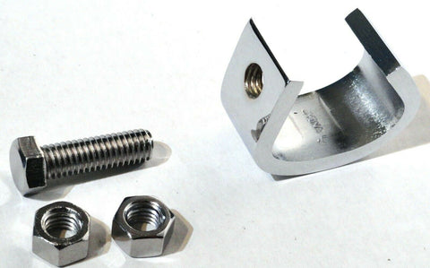 THIS IS THE STAINLESS STEEL CLAMP USED TO MOUNT BUMPER GUIDES TO A STEEL BUMPER. NEW, BULK PACKAGING. SET OF TWO.