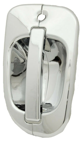 This exterior 3 piece chrome plastic door handle cover fits the passengers side exterior, 2008 through 2016 Freightliner Cascadia and Business Class, Model M2 2004 and newer.  They can be mounted with silicone adhesive or double stick tape but the manufacturer did not provide them in the package.