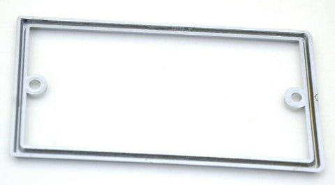 THIS CHROME PLASTIC BEZEL GOES AROUND THE PARKING BRAKE PANEL. IT FITS W900 KENWORTH 2002. IT IS 6-7/16 INCHES WIDE BY 3-5/8 INCHES, MEASURING OUTSIDE TO OUTSIDE. THE TRIM IS 1/4" WIDE AND 3/16" DEEP. THE TWO SCREW HOLES ARE 5 1/2 INCHES APART ON CENTER. NO HARDWARE. NEW, BULK PACKAGING. EACH. |