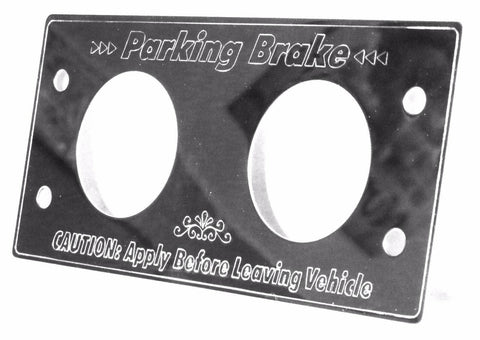 THIS IS THE STAINLESS STEEL PLATE THAT GOES AROUND THE PARKING AIR BRAKES ON A KENWORTH TRUCK 1982-2001. IT HAS PARKING BRAKE ACROSS THE TOP AND CAUTION: APPLY BEFORE LEAVING VEHICLE ON THE BOTTOM. IT MOUNTS WITH 4 SCREWS THAT ARE NOT INCLUDED. IT IS 6.75 INCHES LONG AND 3.25 INCHES WIDE. SCREW HOLES ARE 1-5/8 INCHES BETWEEN EACH OTHER, MEASURING CENTER OF HOLE TO CENTER OF HOLE. THE SCREW HOLES ARE 5.75 INCHES APART ACROSS THE TOP AND BOTTOM OF THE PLATE MEASURING CENTER TO CENTER HOLE. NEW. EACH. |
