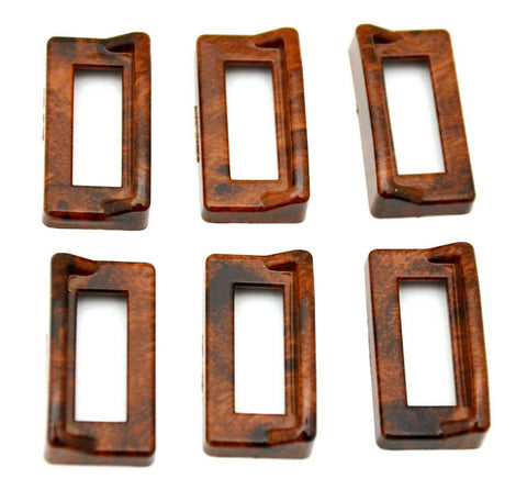 THIS IS A SIMULATED WOOD MADE OF PLASTIC SWITCH LABEL BEZEL SET, WITH VISOR. IT IS A SET OF 6. NEW.
