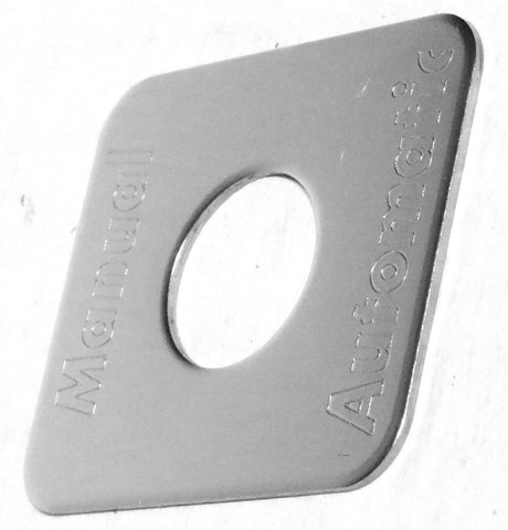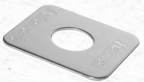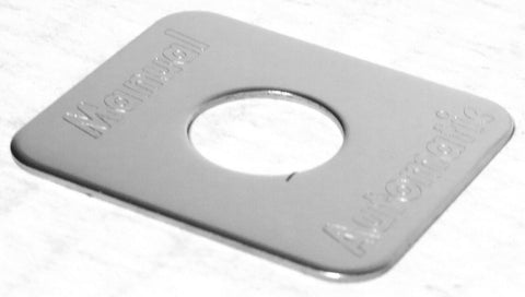 | THIS STAINLESS STEEL PLATE GOES BEHIND THE TOGGLE SWITCH. IT IS 1-1/8 BY 1-1/4 INCHES, WITH AND A 7/16 INCH DIAMETER OPENING. THE LETTERING IS BLOCKED. THE SWITCH FACE NUT HOLDS IT ON. IT FITS FREIGHTLINER TRUCKS. NEW. EACH. |