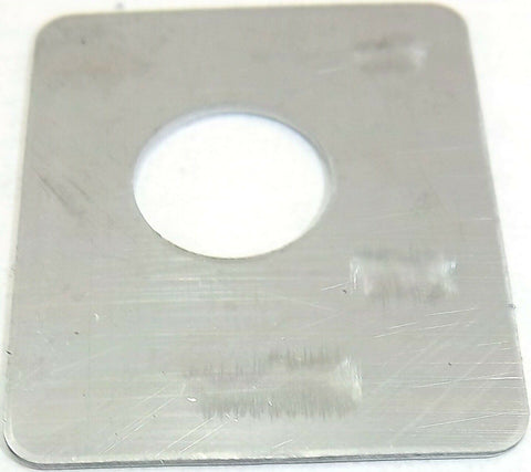 • Size: 1-1/4" wide, 1-5/16" tall; center hole is 7/16" in diameter, 1/4" from edge of plate to edge of center hole on the right side, left side is 3/8" from the edge of the plate to edge of center hole