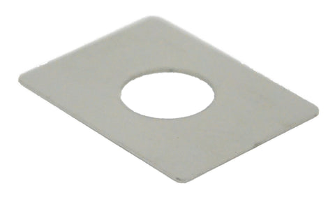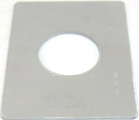 • Size: 1-1/4" wide, 1-5/16" tall; center hole is 7/16" in diameter, 1/4" from edge of plate to edge of center hole on the right side, left side is 3/8" from the edge of the plate to edge of center hole