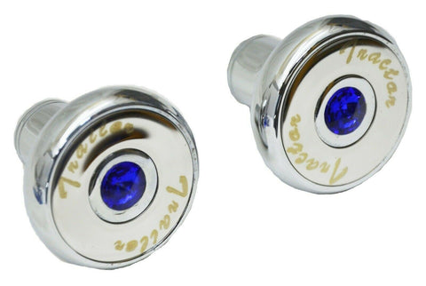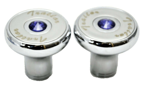- Material: chrome metal, glass jewel, stainless steel script plate