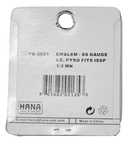 | This stainless steel gauge emblem is engraved. It is large in size and fits a Peterbilt Isspro brand Pyrometer. It is the 1/3 moon shaped and size. New. Bulk packaging. Each. |