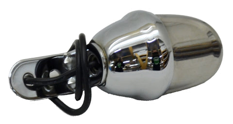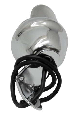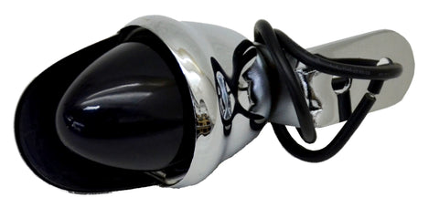 • Size: 1 1/2" diameter and 3" deep; chrome body is 1" long; 7/8" deep visor; bracket is 1 1/8" with 2 mounting holes 1/2" on center; 8" long wire