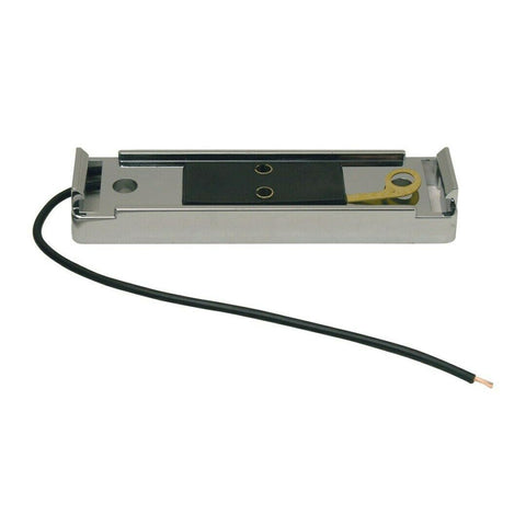 THIS CHROME PLASTIC LIGHT MOUNT BASE IS FOR USE WITH A 3 3/4" BY 7/8 RECTANGULAR SLIM RAIL LIGHT. IT HAS A 4 1/8" LONG BASE BY 1 1/8" WIDE. IT REQUIRES DRILLING TWO HOLES FOR MOUNTING. THE MOUNTING HOLES ARE 3" CENTER TO CENTER. IT IS A SINGLE WIRE SELF GROUNDING MARKER LIGHT BASE. NEW, BULK PACKAGING. EACH.