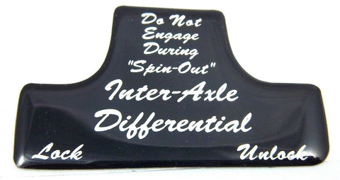 THIS SWITCH GUARD IS CHROME PLASTIC. IT COMES WITH A GLOSSY STICKER. THE STICKER STATES DO NOT ENGAGE DURING SPIN-OUT, INTER-AXLE DIFFERENTIAL, LOCK UNLOCK. IT HAS AN OPENING FOR THE SWITCH AND TWO SCREW HOLES THAT ARE 1-1/2 INCHES APART, MEASURING CENTER TO CENTER OF THE HOLE. THIS LISTING IS FOR A BLACK GLOSSY STICKER AND A CHROME PLASTIC SWITCH GUARD. NEW, BULK PACKAGING. EACH. |