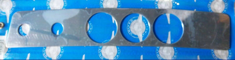 THIS STAINLESS STEEL PIECE GOES OVER THE A/C HEATER DASH PANEL. IT FITS KENWORTH TRUCKS 2006 AND NEWER MODELS W900, T800, and C504. IT HAS 5 ROUND OPENINGS. IT IS 19 INCHES BY 3-1/8 INCHES. MOUNTS WITH DOUBLE STICK TAPE. NEW, BULK PACKAGING. EACH. |