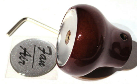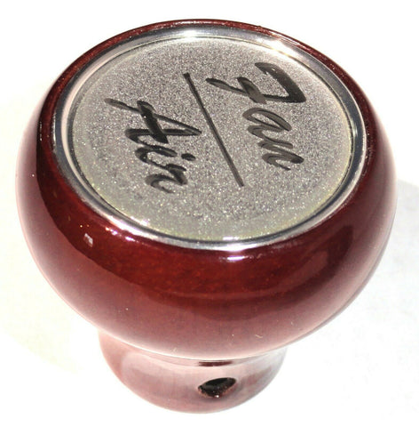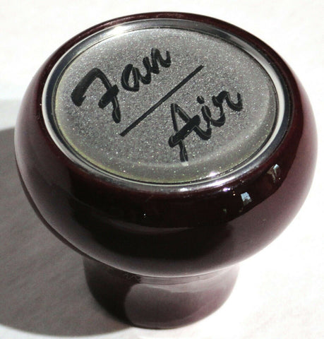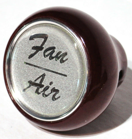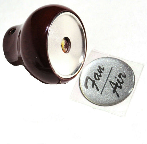 THIS SET CONSISTS OF THE WOOD KNOB AND A GLOSSY PLASTIC STICKER FOR THE TOP OF THE KNOB. THE STICKER IS A 1 INCH DIAMETER WITH THE FAN/AIR IN SILVER LETTERING. THE KNOB IS MOUNTED WITH A SET SCREW AND IT COMES WITH THE ALLEN WRENCH. NEW, BULK PACKAGING. SET.