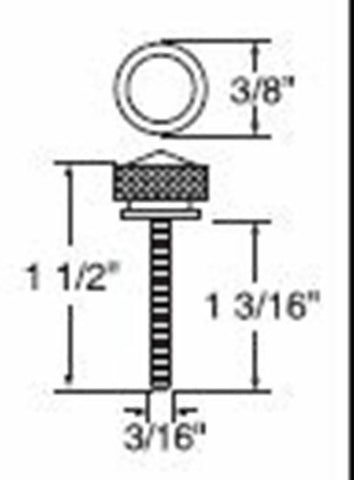 - Size: 3/8" diameter head, 1 1/2" overall length; shaft: 3/16" diameter, 1 3/16" long; knurled head 5/16" tall including base and jeweled tip