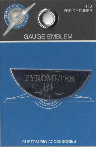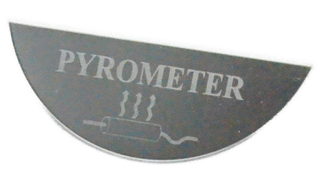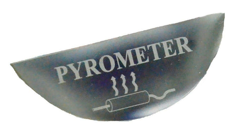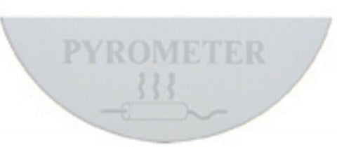 | THIS IS THE LARGE GAUGE EMBLEM FOR THE PYROMETER. IT IS 2-5/8 INCHES WIDE BY 1 INCH IN THE HALF MOON SHAPE. IT HAS ETCHED LETTERING. NEW. EACH. |