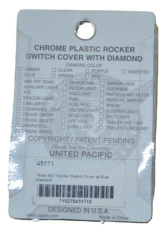 • Chrome plastic "rear a/c" rocker switch cover with diamond.
