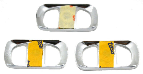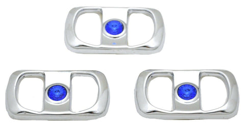 This is a set of 3 chrome plastic rocker switch covers, that fit newer Freightliner trucks (various models) with rocker switches in clusters. They mount with double stick tape in the middle but a dab of silicone could also be used. They are 1 3/8" tall and 3/4" wide, measuring the outside from the back side of the trim. They are they are approximately 1/8 of an inch thick. The opening is approximately 5/8 of an inch on the longest side and 3/8 inch in the middle in height. Set of 3. |