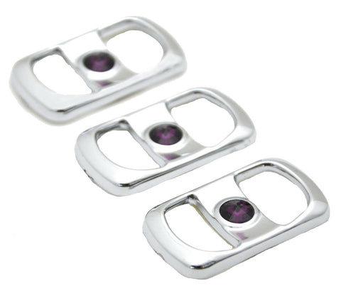 This is a set of 3 chrome plastic rocker switch covers, that fit newer Freightliner trucks (various models) with rocker switches in clusters. They mount with double stick tape in the middle but a dab of silicone could also be used. They are 1 3/8" tall and 3/4" wide, measuring the outside from the back side of the trim. They are they are approximately 1/8 of an inch thick. The opening is approximately 5/8 of an inch on the longest side and 3/8 inch in the middle in height. Set of 3. |
