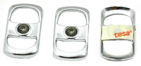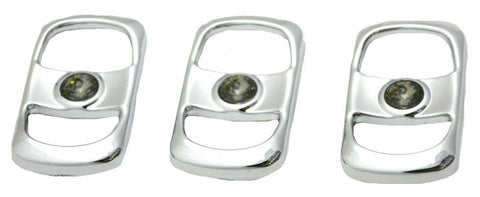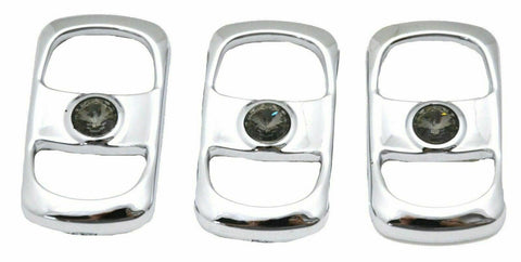 This is a set of 3 chrome plastic rocker switch covers, that fit newer Freightliner trucks (various models) with rocker switches in clusters. They mount with double stick tape in the middle but a dab of silicone could also be used. They are 1 3/8" tall and 3/4" wide, measuring the outside from the back side of the trim. They are they are approximately 1/8 of an inch thick. The opening is approximately 5/8 of an inch on the longest side and 3/8 inch in the middle in height. Set of 3.