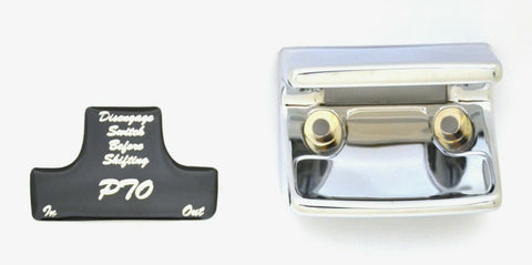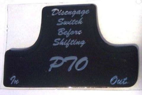 THIS SWITCH GUARD IS CHROME PLASTIC. IT COMES WITH A GLOSSY STICKER. THE STICKER STATES DISENGAGE SWITCH BEFORE SHIFTING AND AT THE BOTTOM IN OUT. THIS LISTING IS FOR A BLACK GLOSSY STICKER AND A CHROME PLASTIC SWITCH GUARD. NEW, BULK PACKAGING. EACH. |