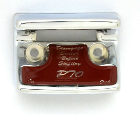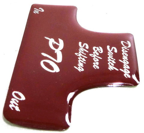THIS SWITCH GUARD IS CHROME PLASTIC. IT COMES WITH A GLOSSY STICKER. THE STICKER STATES DISENGAGE SWITCH BEFORE SHIFTING AND AT THE BOTTOM IN OUT. THIS LISTING IS FOR A RED GLOSSY STICKER AND A CHROME PLASTIC SWITCH GUARD. NEW, BULK PACKAGING. EACH. |
