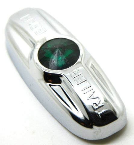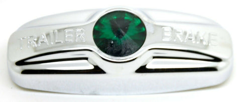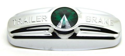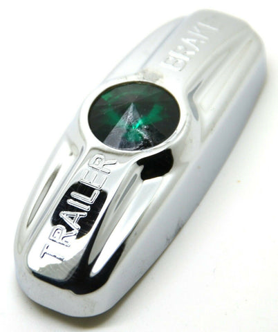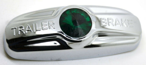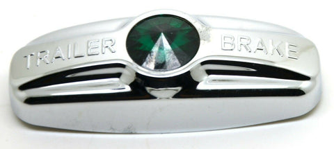 THIS CHROME PLASTIC PIECE FITS OVER THE TRAILER BRAKE HANDLE. IT FITS FREIGHTLINER CENTURY (1996-2011), COLUMBIA (2001-2017). IT HAS TRAILER BRAKE IN BLOCK LETTERING AND A BLUE JEWEL IN THE CENTER. IT IS A DOUBLE STICK TAPE MOUNT. NEW, BULK PACKAGING. EACH.