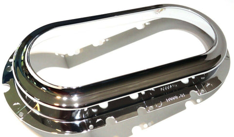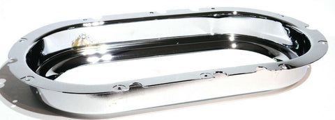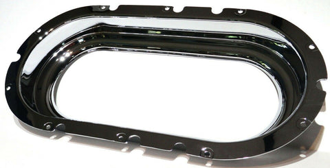 THIS IS A CHROME PLASTIC PIECE THAT FITS THE VIEW WINDOW IN THE INSIDE OF THE DOOR. IT HAS 10 SCREW HOLES (NOT INCLUDED). IT IS 9 3/8" WIDE WITH A 2 3/8" TRIM FACE. IT IS 18" TALL WITH AN OPENING SIZE OF 5 3/8" BY 13 3/4". IT FITS PETERBILT TRUCKS, 2000-2004. NEW. EACH. |